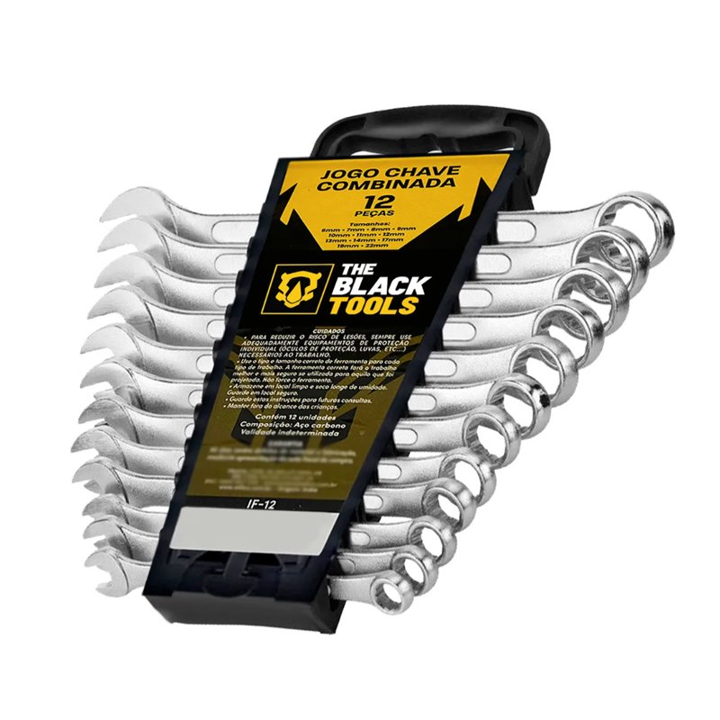 Jogo De Chave Boca E Estrela Combinada 12 Pçs Aço 6 22 Mm Cromada IF-12 The Black Tools