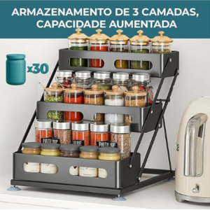 Porta Temperos com 3 Camadas, Rack de Especiarias para Organizador de Cozinha, Prateleira para Cozinha de Metal Resistente à Ferrugem, Dobrável