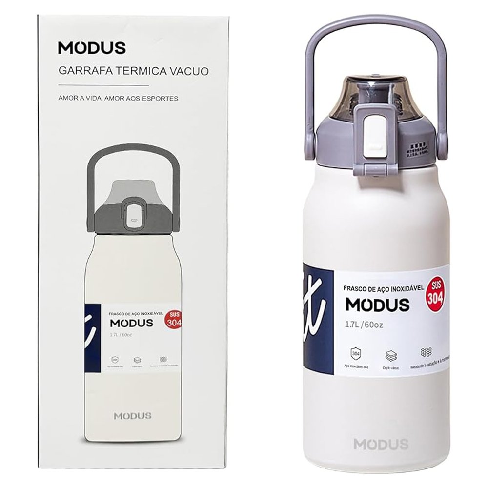 Garrafa Térmica Isolada a Vácuo De Aço Inoxidável 316 1700ML Grande Capacidade Com Canudo (Branco)