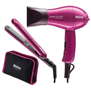 Kit Travel De Beleza Shine Philco Compacto P/ Viagens Secador + Prancha