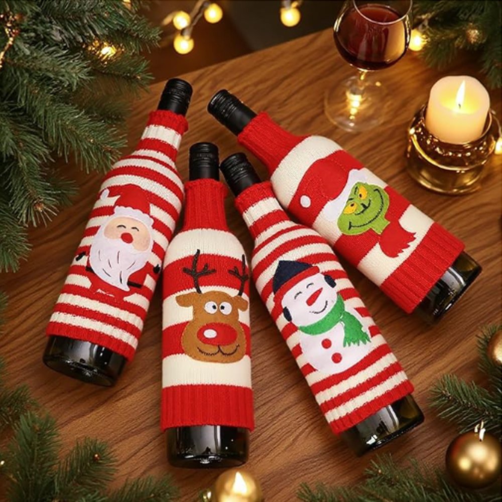 Conjunto de sacos de garrafa de vinho de Natal, capas de garrafa de vinho festivas de Natal, pacote com 4 – Papai Noel, rena, boneco de neve, elfo.