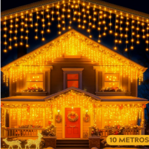 Cascata Natal Luz Fixa 400 Leds 10 Metros Branco Quente Extensível A Prova D’agua Brielli Home