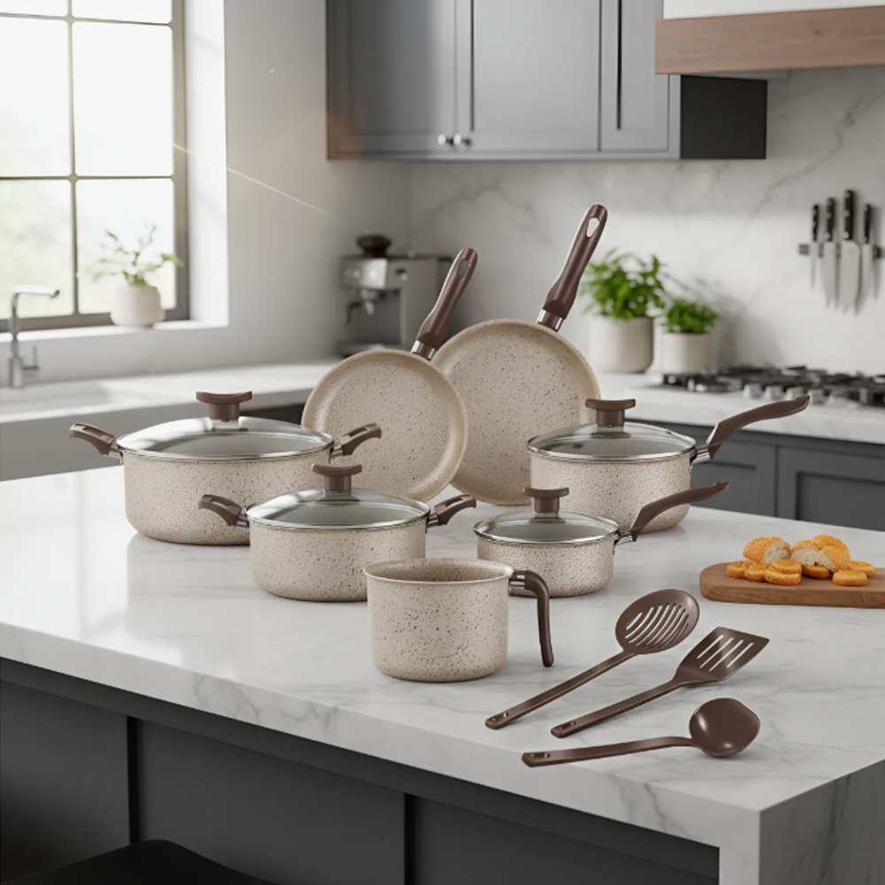 Conjunto De Panelas Antiaderente 10 Peças Coffee Cappuccino