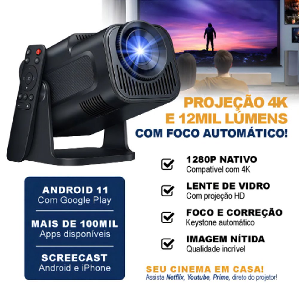 Projetor Hy320 Davely Smart TV Android WiFi6 390 ANSI Lumens Full HD 4K Mini Projetor Portátil Preto com Controle Remoto