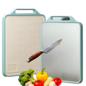 Tábua de Corte Dupla Face Inox e PP Tabua de Carne Inox Antibacteriana, Tábua de Corte de Aço Inoxidável, Antiderrapante e Antimicrobiana, Resistente a Mofo e Arranhões – Tamanho Grande Premium