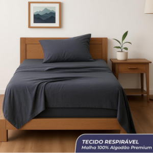 Decolab Jogo de Lençol Malha 100% Algodão Extra Macio – Roupa De Cama Antiácaro, Inclui Lençol Com Elástico (Forro) E Fronhas (Azul-marinho, Solteiro Completo)