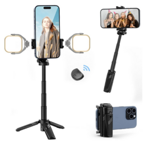 ULANZI JJ02 Bastão de Selfie Tripé: Grip, Bastão Retrátil 3 em 1 com Controle Remoto; Ajuste 360°; Versátil e Portátil para Fotografia, Vlog e Transmissão