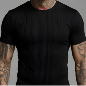 Camiseta Texturizada Elegante Masculina Básica Canelada Slim