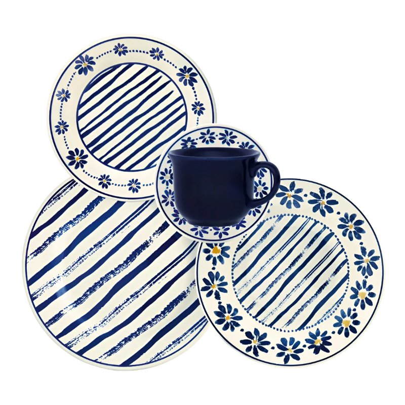 Jogo de Jantar 20 Peças Biona Cerâmica Donna Margaridas