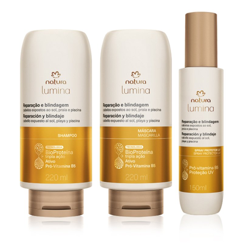 Kit Shampoo, Máscara e Spray Lumina para Reparação e Blindagem Natura