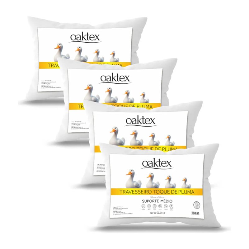 Kit 4 Travesseiros Oaktex 50×70 Antialérgico Fibra Siliconada Branco