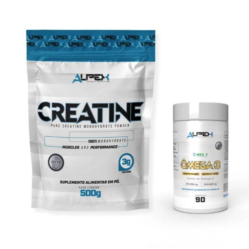 Kit Creatina Pura 500g Refil + Ômega 3 Selo Meg3 90 Caps – Alpex Sports Nutrition
